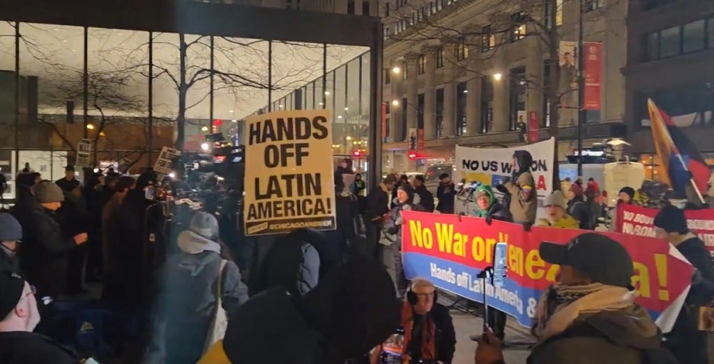 Protesters chanted “Hands Off Venezuela” and “No Blood for Oil.” They decried the attack as a clear violation of U.S. and international law and an act of imperialism.