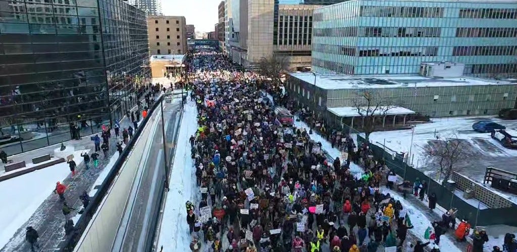 They made a mistake in picking Minneapolis. They came here believing that the same old lines of division that animate their entire political project—race, culture, class—would be reason enough to keep people in their homes while they went about their violent work. Instead we are out there in every place they are, showing them that every person in this city is one of our own, that there is no such thing as other people’s children, that collectively we are not afraid of staring them in the eye. They can sense this. We can see them re-running calculations in their heads, every time we turn them away by being willing to stand there, get in the way, observe and document their evil. This enrages them. As we saw this morning, they are now killing us for it….