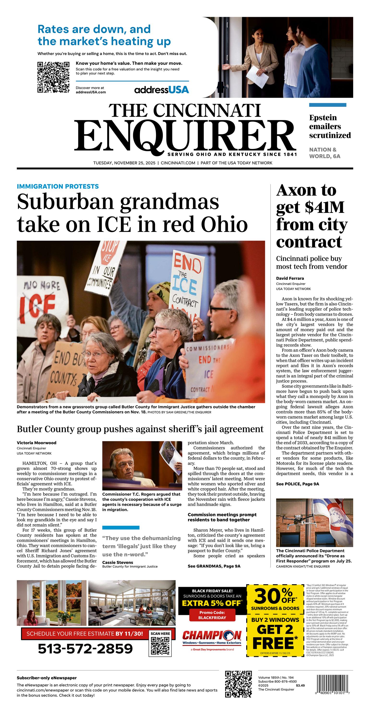 The group of 70 people – mostly grandmothers – who show up weekly to commissioner meetings in a deep-red Ohio county to protest officials’ agreement with ICE. (And the Cincinnati Enquirer, for giving the story the front-page treatment.)