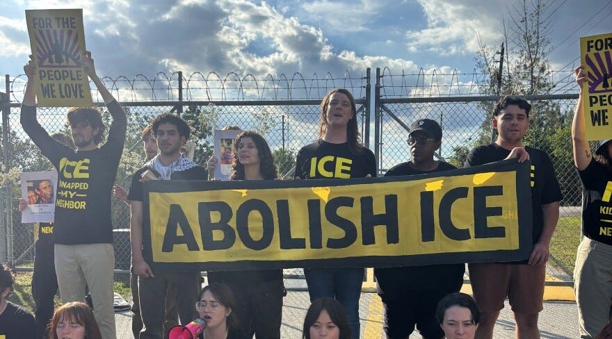 The 30 people, most of them young, who participated in an act of civil disobedience on Saturday, getting themselves arrested for blocking the entrance to the Krome immigration detention center in Miami. “As young people, we refuse to accept a future where our friends and family can be disappeared without notice,” Manu Guerrero told WLRN News.